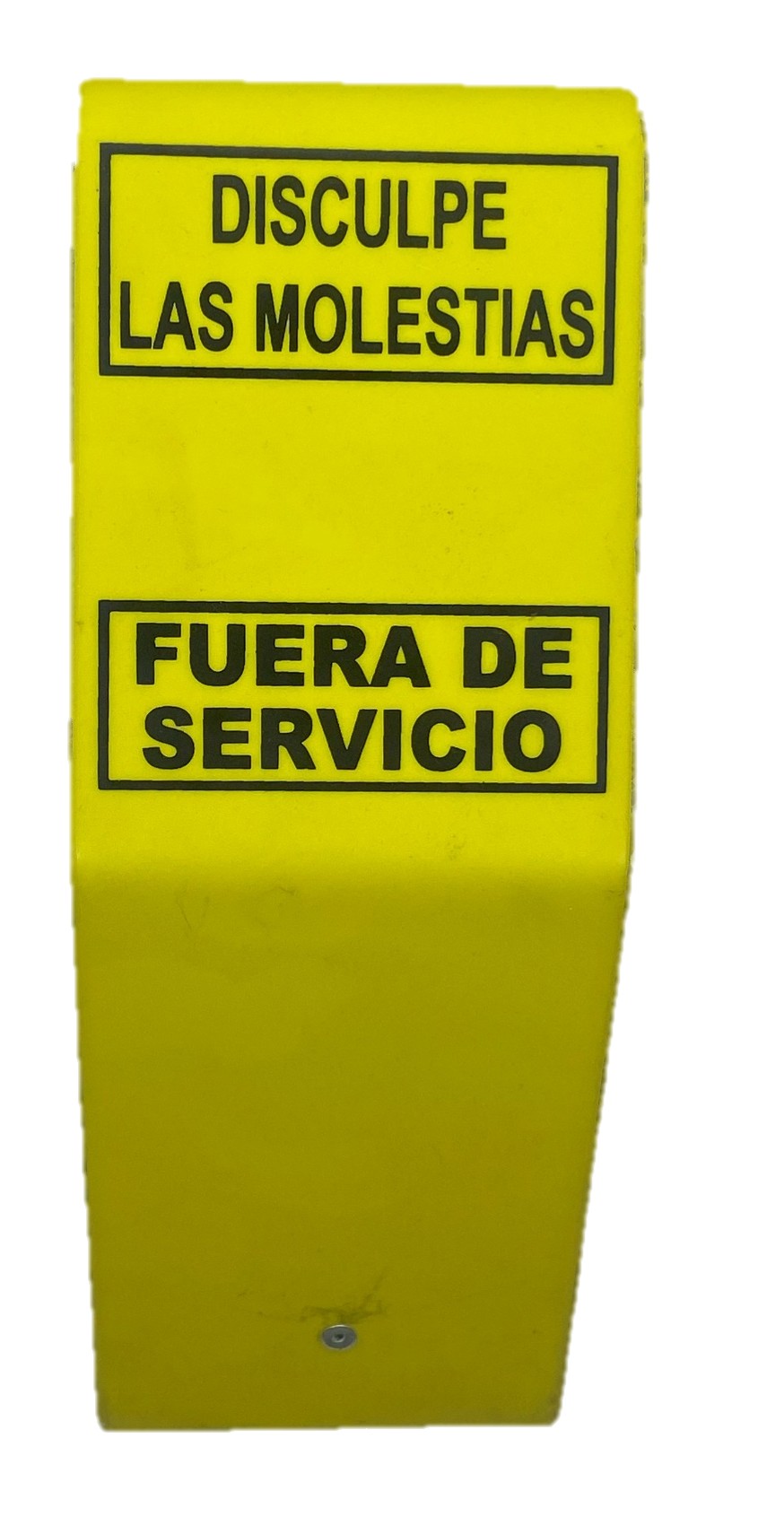 Indicador plástico amarillo, para bloquear despacho de combustible en boca de surtidor.