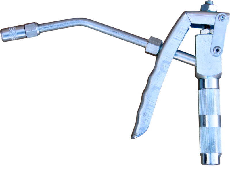 Pistola para engrase construida en acero, gallo ergonómico, para ser ulizada en equipos de engrase neumáco de alta presión, juntamente con la conexión giratoria po “Z” para evitar la torsión de la manguera.
