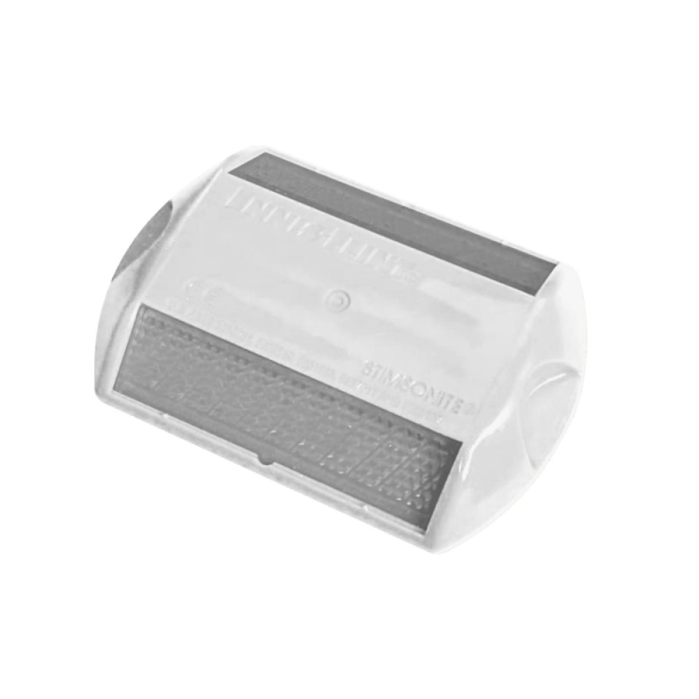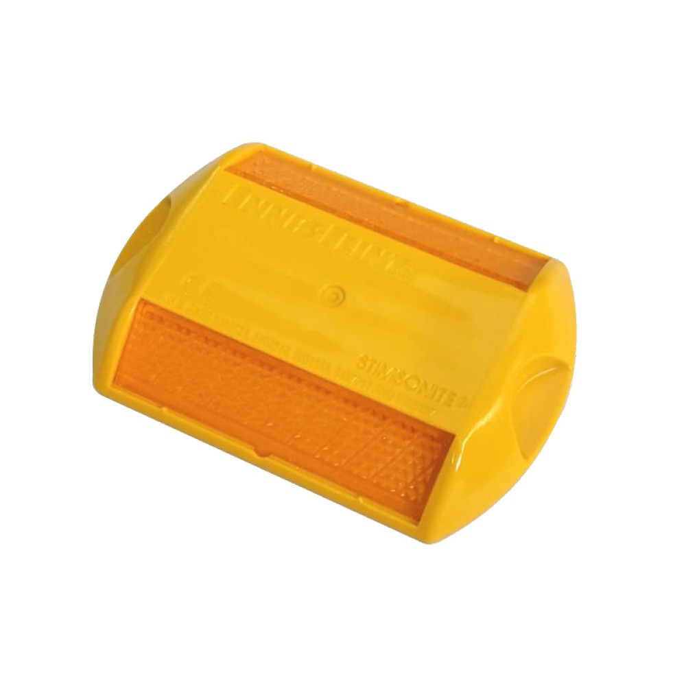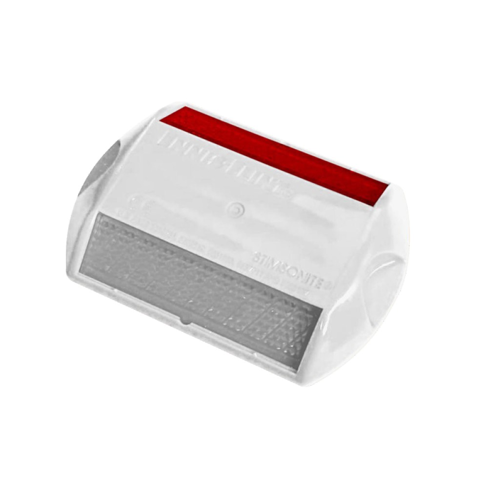 Tacha reflectiva vial, marca STIMSONITE , diseñada para brindar mayor resistencia al impacto. Medidas 11,5 X 8 CM . Provista con lente reflector de prisma cúbico, moldeado en acrílico grado óptico.