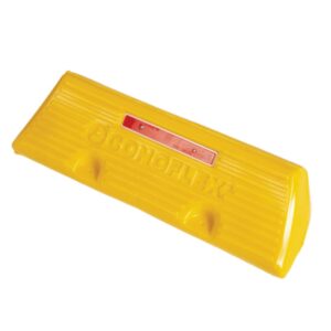 Tope de estacionamiento vehicular, apto para automóviles, pick up y camiones, fabricado en material PVC flexible, con filtro UV para protección solar. Conformado en “una sola pieza”. Medidas: 50 cm x 15 cm y 11 cm de altura. Provisto de 4 orificios para fijación con anclaje mecánico al suelo. Cuenta con 1 lente reflectivo acrílico prismático de 17 x 2 cm. el mismo se encuentra bajo relieve para su mayor protección